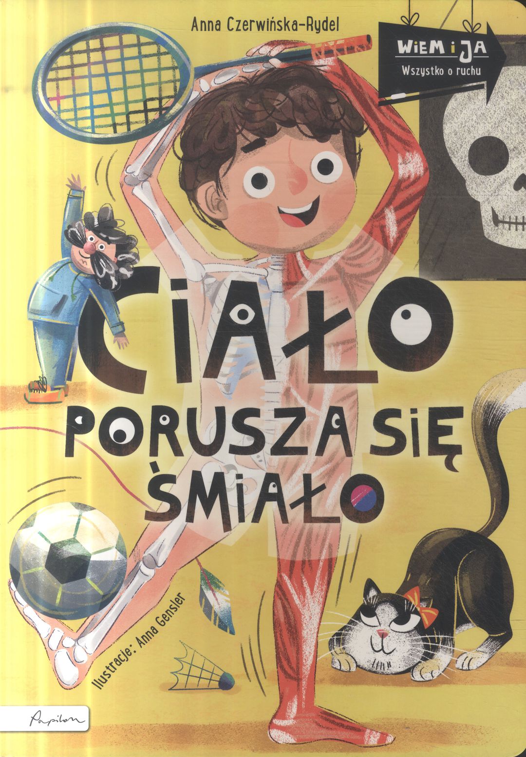 Dlaczego kości są twarde? Czy oczy mają mięśnie? Jak działają stawy? Czy wewnątrz ciała panuje ciągły ruch? Co to jest koordynacja ruchowa? Dlaczego ważna jest aktywność na świeżym powietrzu? Jak ćwiczenia fizyczne wpływają na mózg? Zabawny duet ekspertów – Profesor Mądralski i urocza Kotka Psotka – bierze pod lupę CIAŁO i UKŁAD RUCHU, żeby odpowiedzieć na każde pytanie! Wiek przedszkolny to czas w życiu dziecka, w którym kształtują się przyzwyczajenia mające wpływ na jego późniejsze życie. Maluch uczy się dbać o swoje zdrowie i coraz więcej wie o funkcjonowaniu ciała. Dzięki książce dowie się, jak ważna jest aktywność fizyczna, po co nam szkielet, jak pracują mięśnie, jak to się dzieje, że możemy się poruszać. Dziecko pozna także zasady zdrowego odżywiania i nauczy się dbać o kości, mięśnie, stawy i całe ciało. „Ciało porusza się śmiało” to edukacja z humorem, opatrzona ilustracjami z całym mnóstwem szczegółów. A wszystko to w trwałej i bezpiecznej kartonowej formie z zaokrąglonymi narożnikami [opis wydawcy].